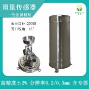 全金属雨量传感器是*种水文、气象仪器,用来测量自然界降雨量,同时将降雨量转换为以开关量形式表示的数字信息量输出,以满足信息传输、处理、记录和显示等的需要。可用于气象台(站)、水文站、农林、野外测报站等配合我公司 研发生产的雨量记录仪来测量降水量、降水强度、降水时间等;也可为防洪、供水调度、电站水库水情管理提供 数据。